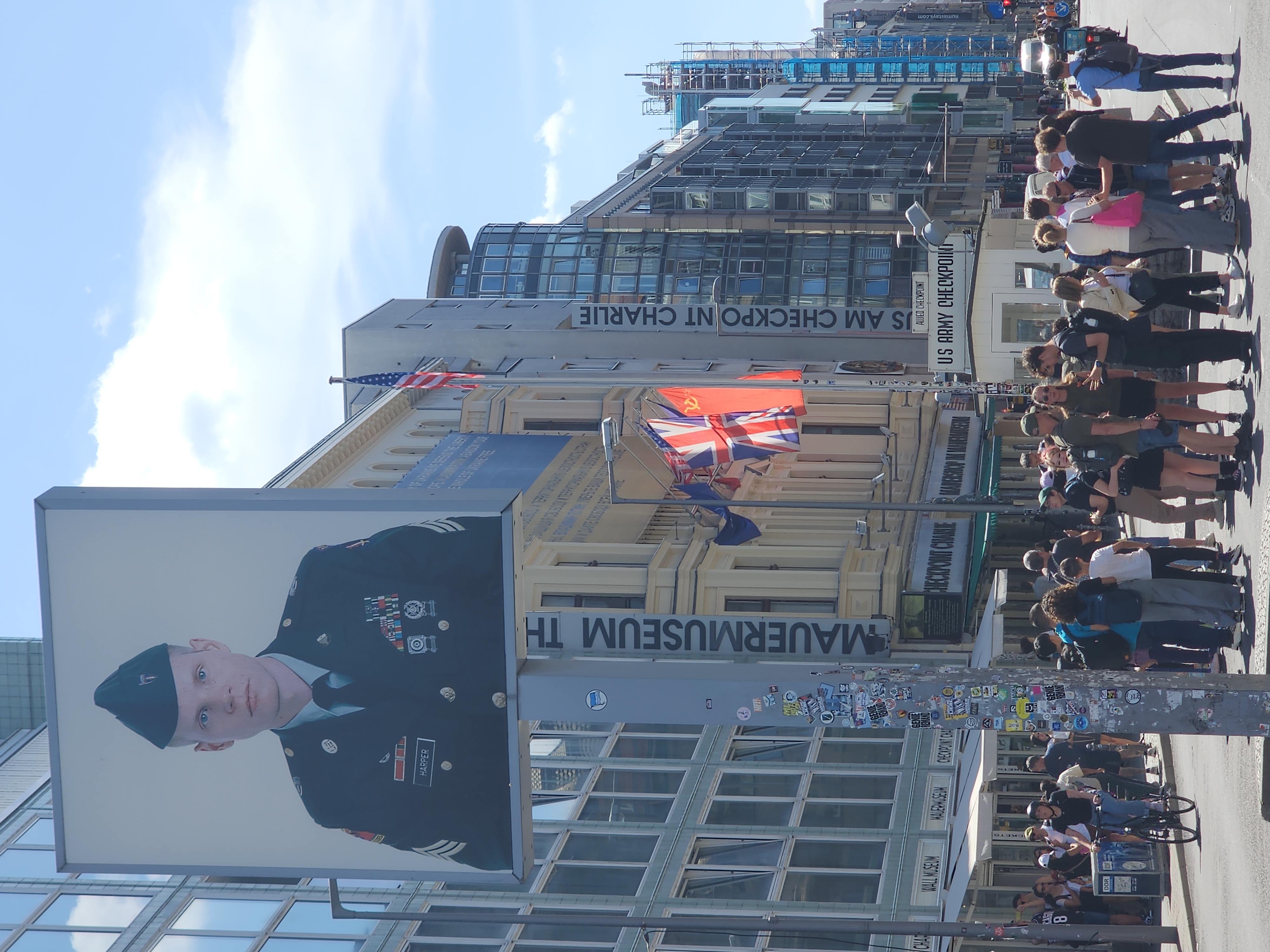 그런데 베를린이 큰 볼거리가 없어서인지 이 초소 앞에서 사진을 찍으려는 사람들이 많아 줄을 서서 찍어야 합니다.