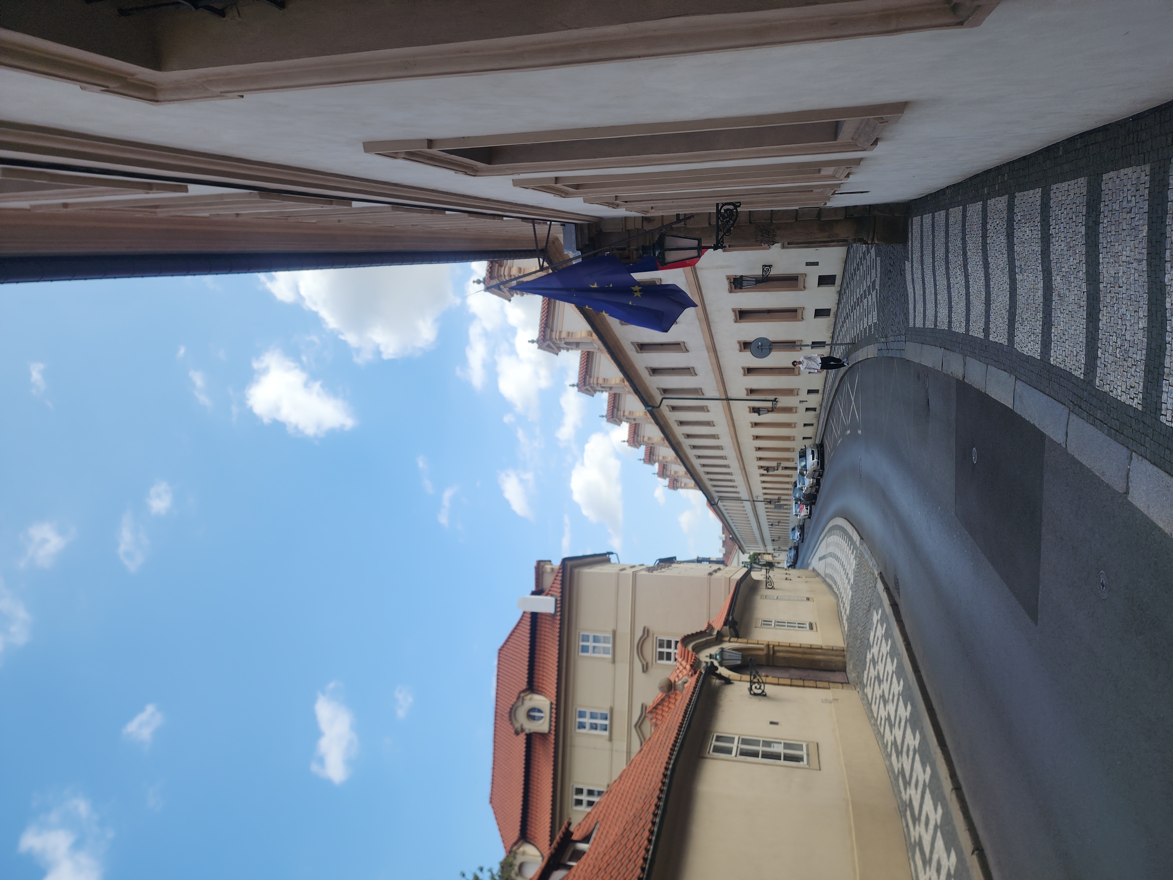 카를교 지나 프라하성 가는 길 양쪽으로는 세계 각국 공관들이 있는지 유로국기와 해당국가의 국기가 갈ㅣ걸려 있는 건물들이 많더라고요.