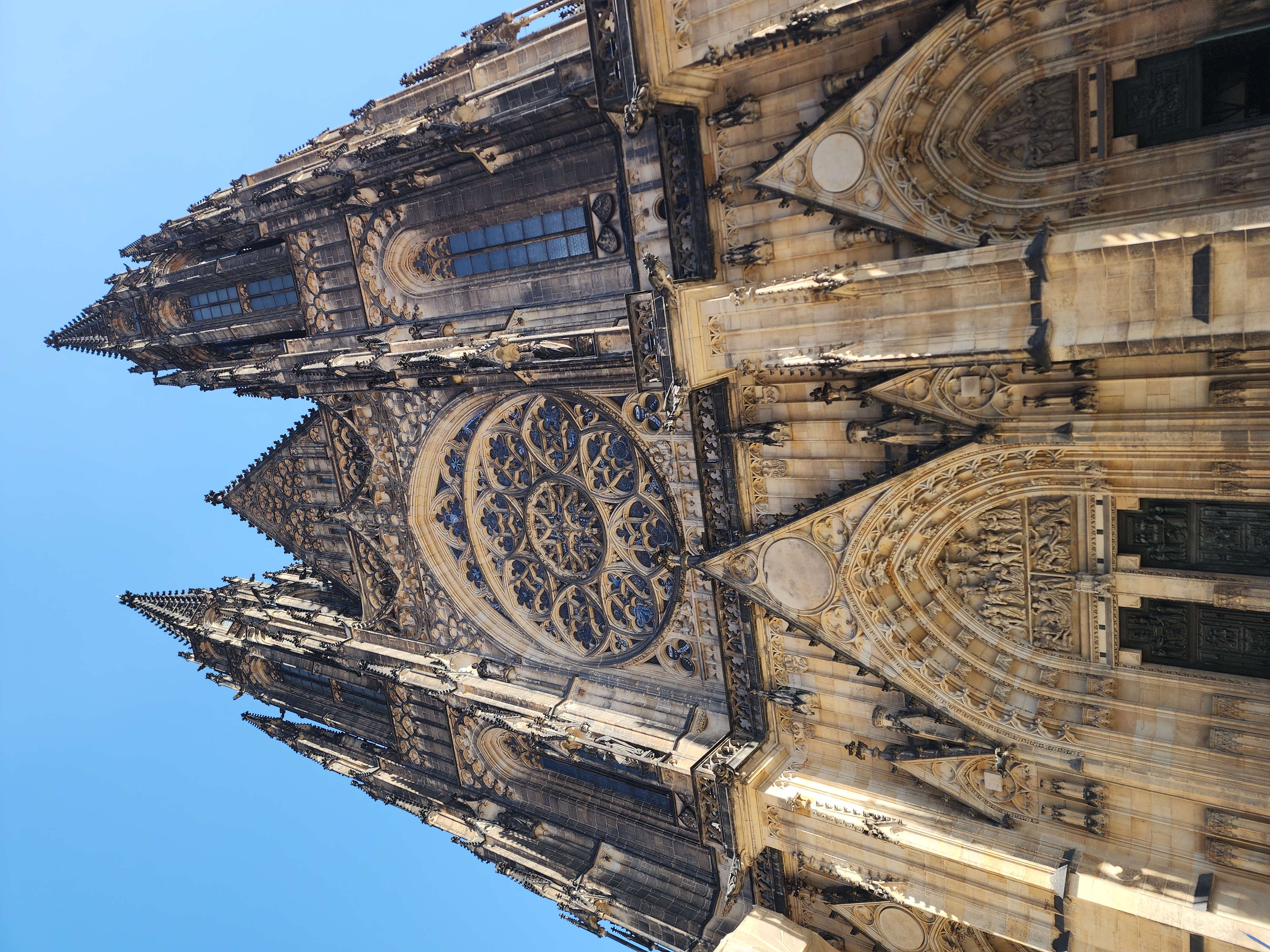 프라하 성 안에 있는 고색창연한 성당은 성 비투스 대성당으로, 프라하 성을 대표하는 건축물입니다. 이 성당은 고딕 양식의 웅장한 구조와 정교한 스테인드글라스로 유명하며, 수 세기에 걸쳐 증축과 개보수가 이루어져 왔습니다. 내부에는 체코 왕실의 왕관과 보물, 역사적 유물들이 보존되어 있어 단순한 종교 공간을 넘어 체코의 정치·문화적 중심지로서의 의미를 지니고 있습니다.