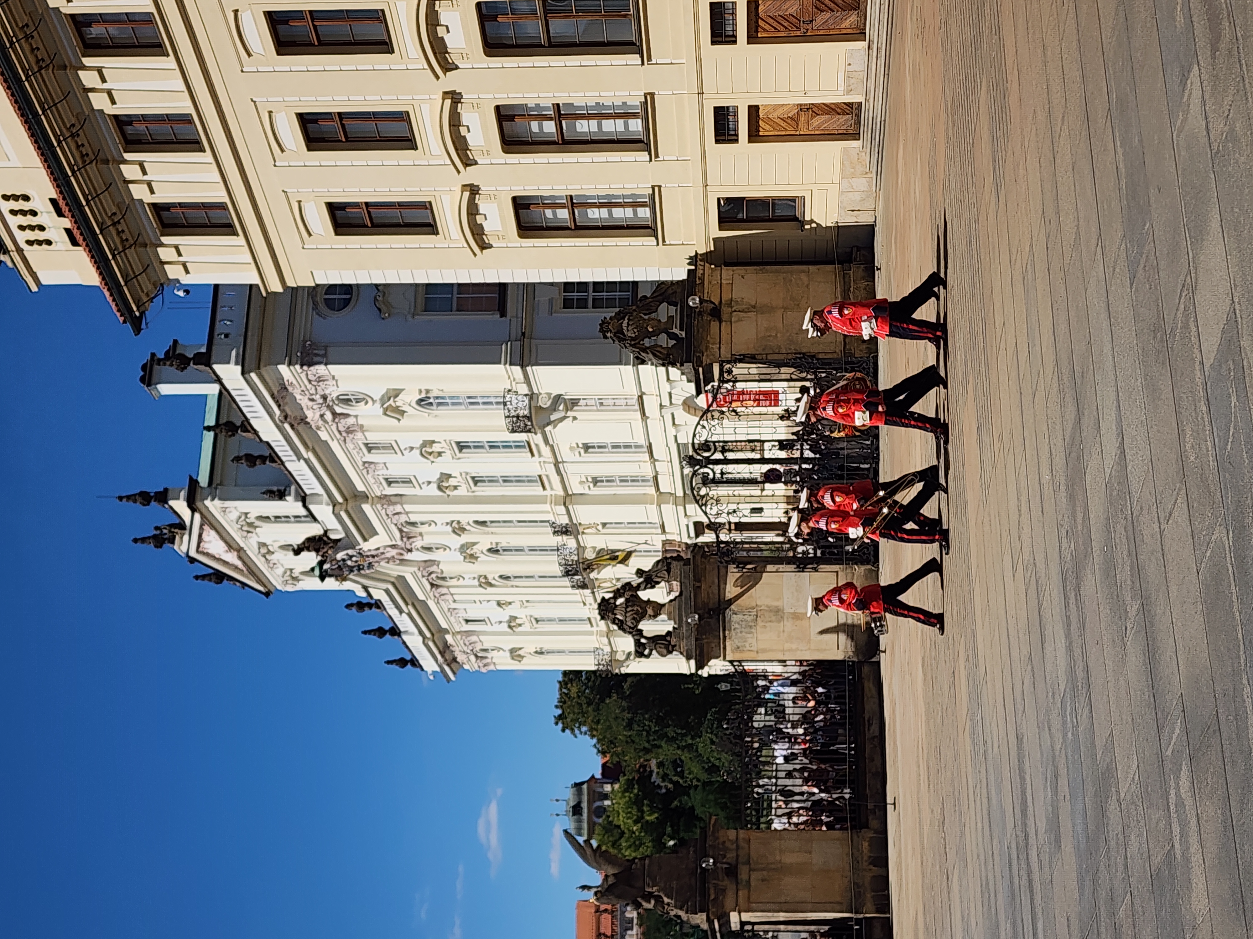 제가 체험했을 때는 여러 차례 근위대 교대식을 볼 수 있었는데, 이 의식은 매일 정해진 시간에 반복적으로 열렸습니다. 먼저 가장 화려하고 규모가 큰 공식 의식은 정오 12시경에 진행되었고요.