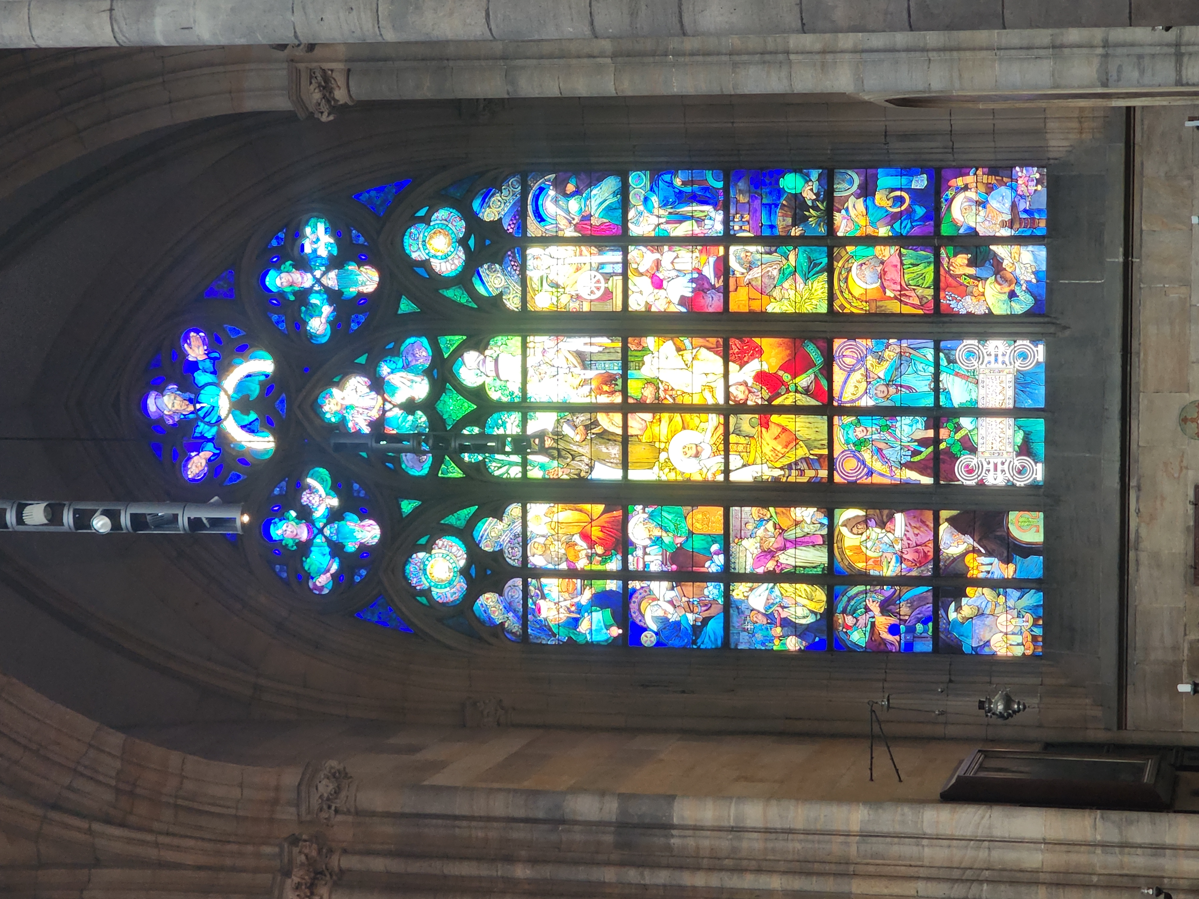 특히 알폰스 무하가 디자인했다는 스테인드글라스 앞에서는 한동안 말을 잊고 서 있었습니다. 그림 속 인물들의 표정, 옷자락의 곡선, 색의 대비가 너무도 섬세해 유리로 만들었다는 사실이 믿기지 않을 정도였습니다. 카메라를 들어 여러 장 사진을 찍었지만, 화면 속 이미지로는 그 현장의 분위기를 온전히 담아내기 어렵다는 아쉬움도 들었습니다. 눈으로 직접 보는 감동은 사진을 한참 넘어서는 것이었습니다.