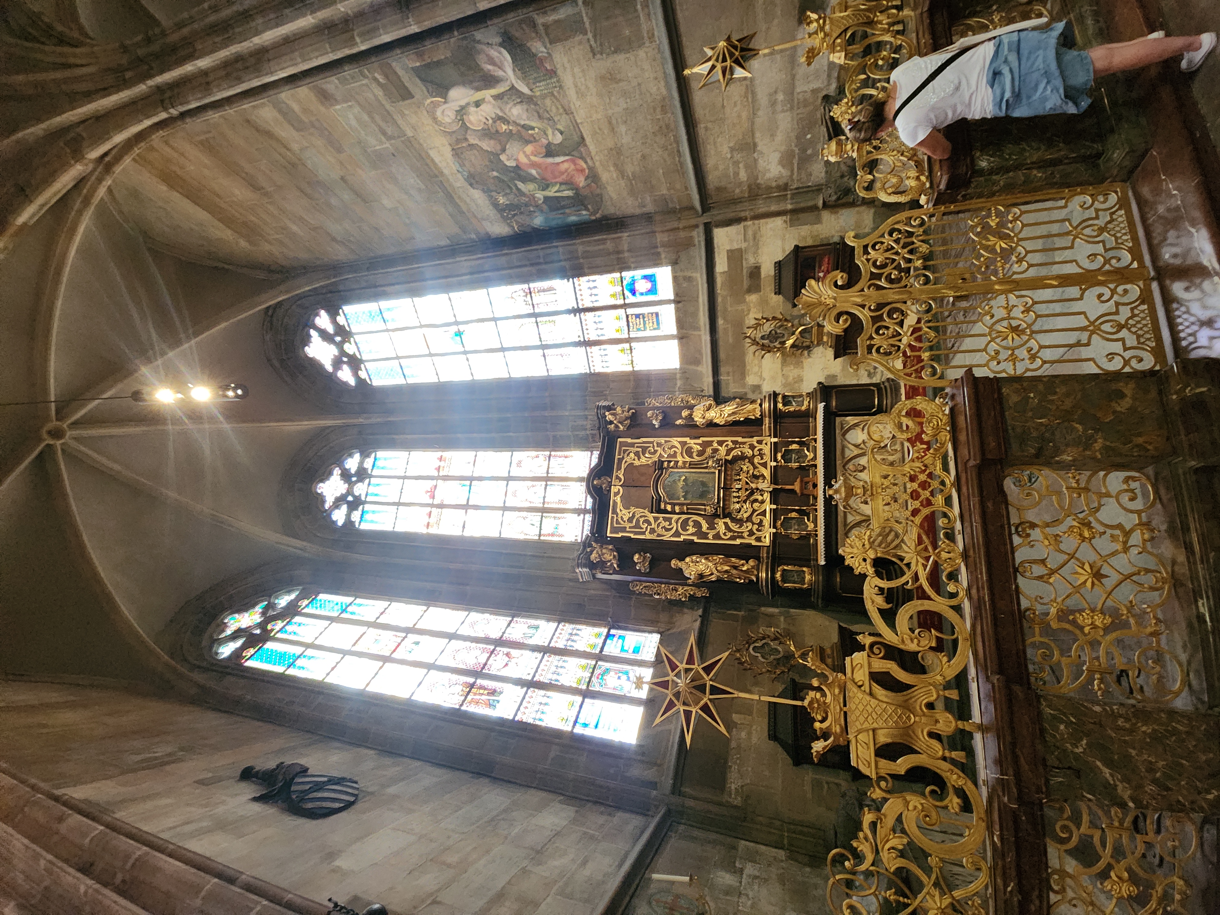 성 비투스 성당의 거대한 문을 지나 내부로 들어섰을 때 가장 먼저 느껴진 것은 ‘공간의 높이’였습니다. 고개를 들어 천장을 바라보는 순간, 시야가 아찔할 정도로 위로 열려 있었고, 촘촘한 리브 볼트 천장이 끝없이 이어지는 모습은 그 자체로 경외심을 불러일으켰습니다. 단순히 크기만 큰 공간이 아니라, 위로 뻗어 오르는 선 하나하나가 신을 향한 인간의 염원을 시각적으로 표현하고 있는 듯했습니다.