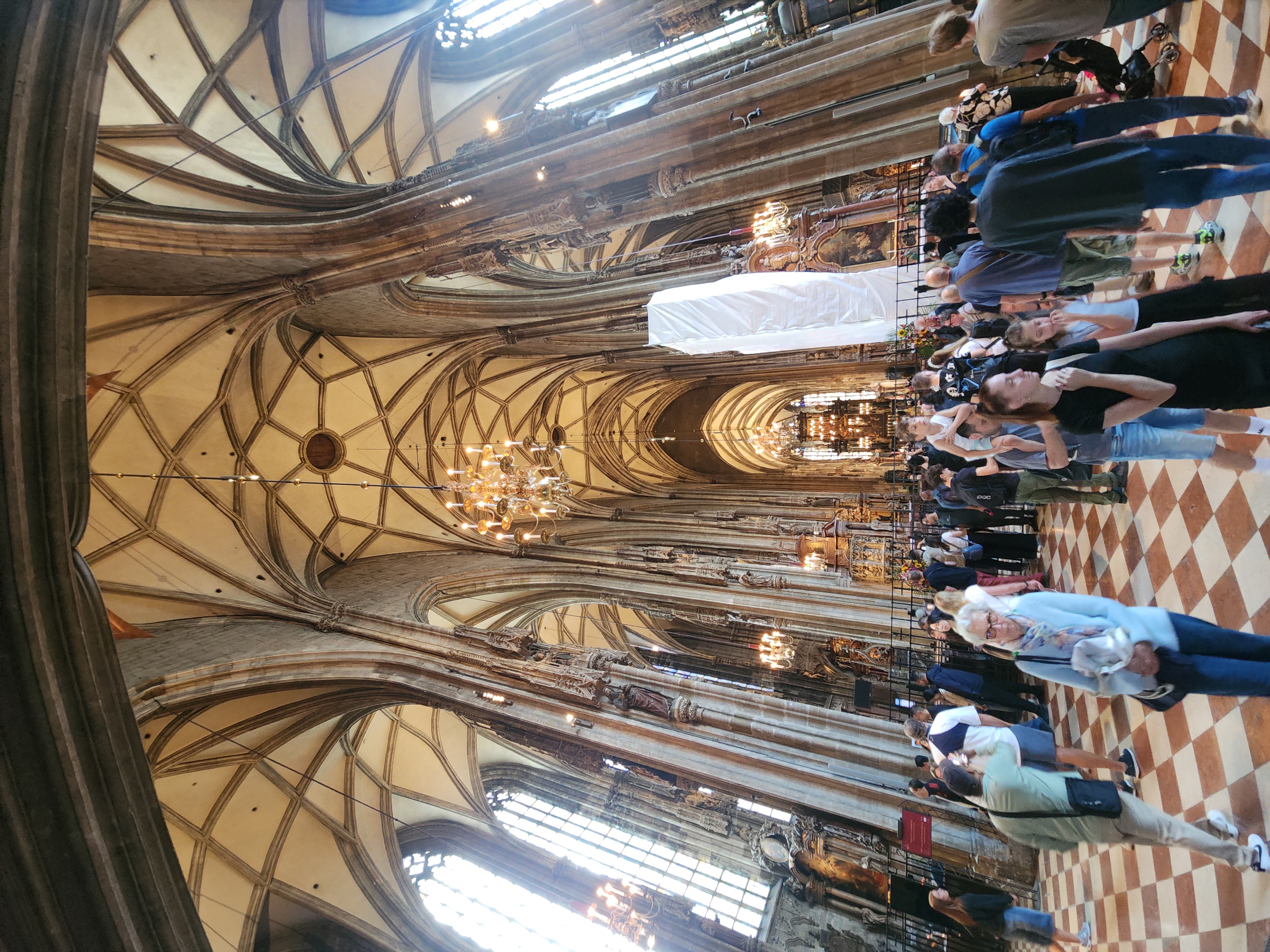 성당 안으로 들어서니 높은 천장과 스테인드글라스 창을 통해 들어오는 빛이 경건한 분위기를 자아냈습니다. 바깥의 번화한 거리와는 전혀 다른 고요함이 흐르고 있었습니다. 관광객들로 붐비는 공간이었지만, 이상하게도 마음은 차분해졌습니다. 그 순간만큼은 예전에 느꼈던 비엔나의 품격 있는 분위기가 다시금 떠오르는 듯했습니다.